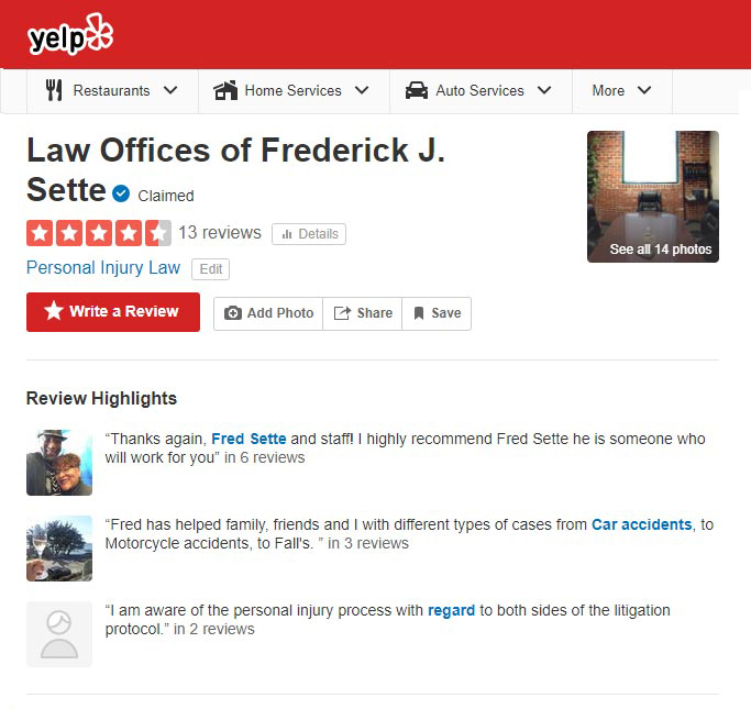 PERSONAL INJURY LAW FIRM SETTE LAW OFFICE CLIENT REVIEWS